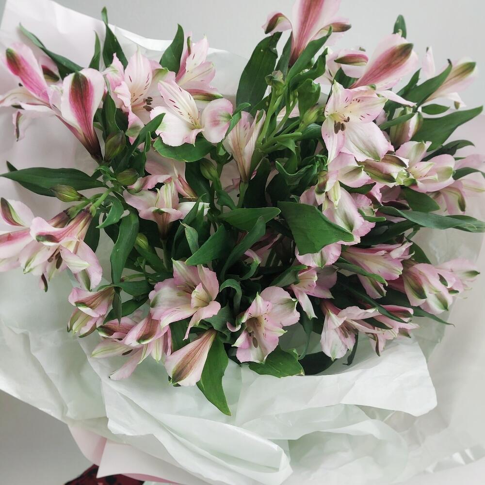 Альстромерия – 15 шт.Тишью – 2 шт.Авторская упаковка – 1 шт.Лента атласная – 1 шт.