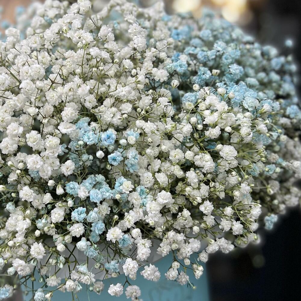 Большая коробка из бело-голубых гипсофил