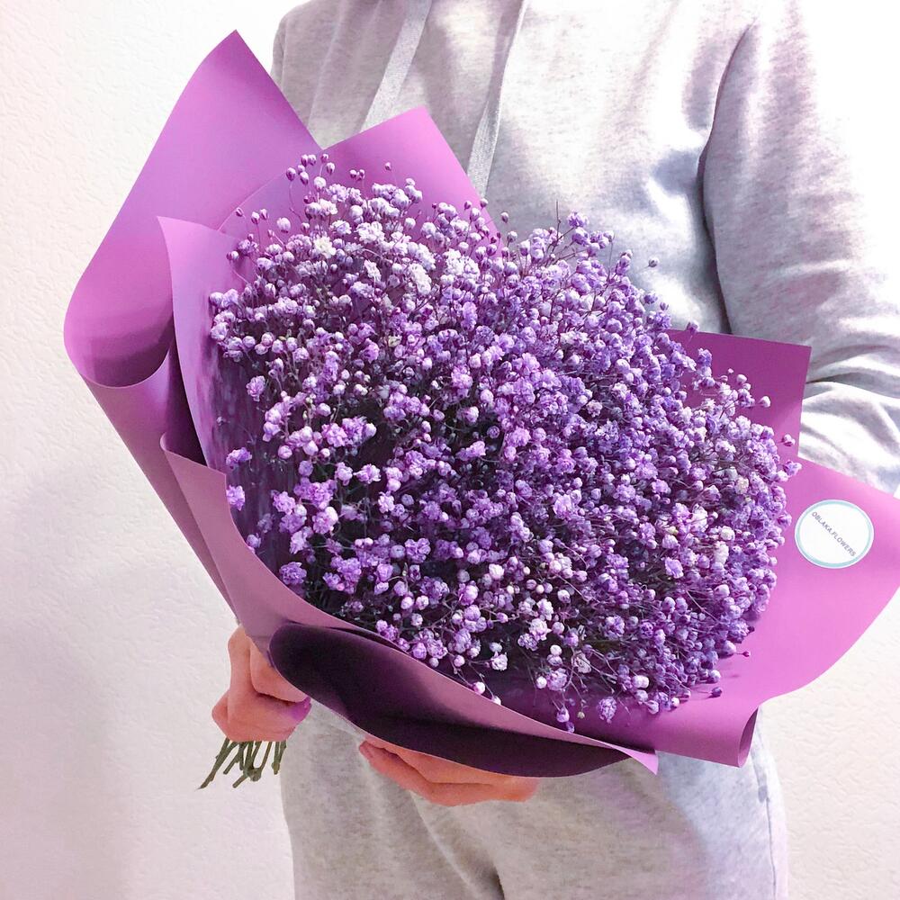 Гипсофила – 7 шт.Упаковка корейская пленка – 2 шт.Лента атласная – 1 шт.