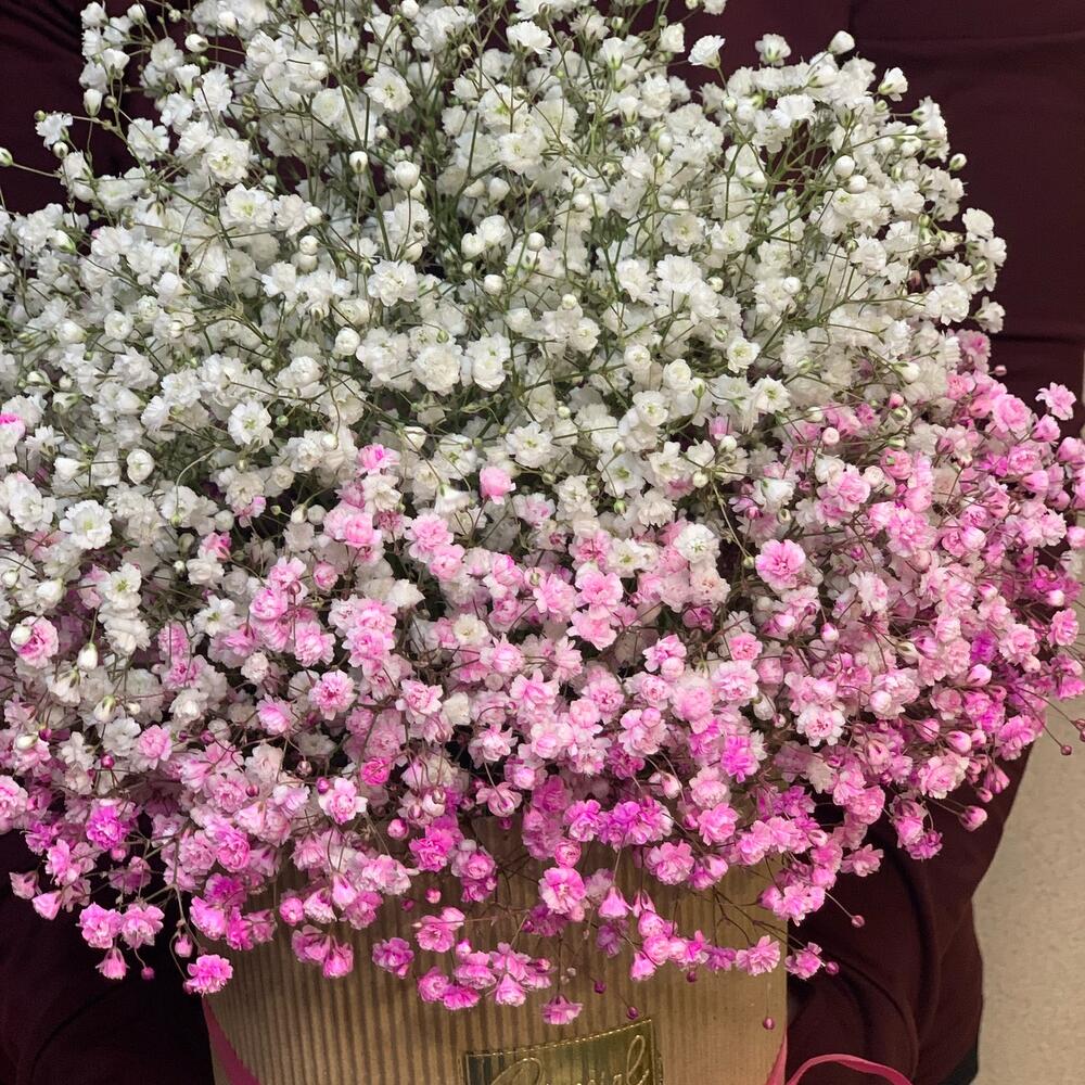 Коробка может отличаться от представленной на фото.Нежные веточки гипсофилы собраны в единую композицию для создания уникального внешнего вида. Благодаря специальной флористической губке растение питается влагой на протяжении всего срока жизни – нужно всего лишь раз в несколько … Показать ещёдней доливать небольшое количество воды в губку. Идеально подходит, как для подарка, так и для оформления интерьера – после высыхания цветы не теряют внешний вид – у некоторых наших покупателей композиции стоят уже пол года.