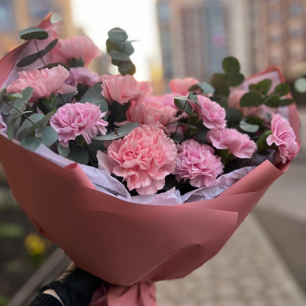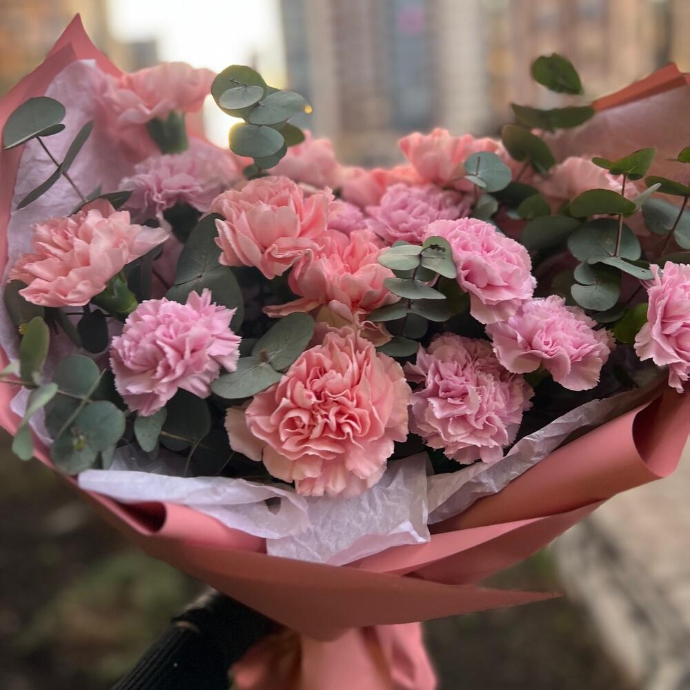 Эвкалипт – 2 шт.Фисташка – 2 шт.Упаковка дизайнерская – 4 шт.Диантус сортовой – 15 шт.
