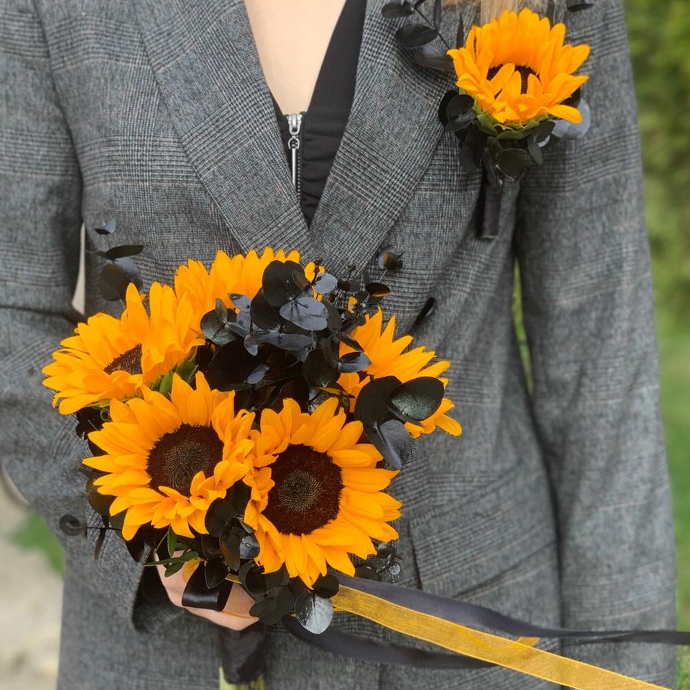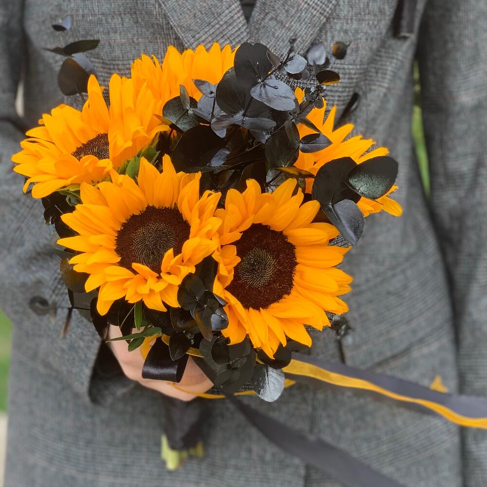 Зелень – 6 шт.Подсолнух – 6 шт.Атласная лента – 4 шт.