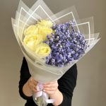 Букет из фиолетовых гипсофил и белых роз