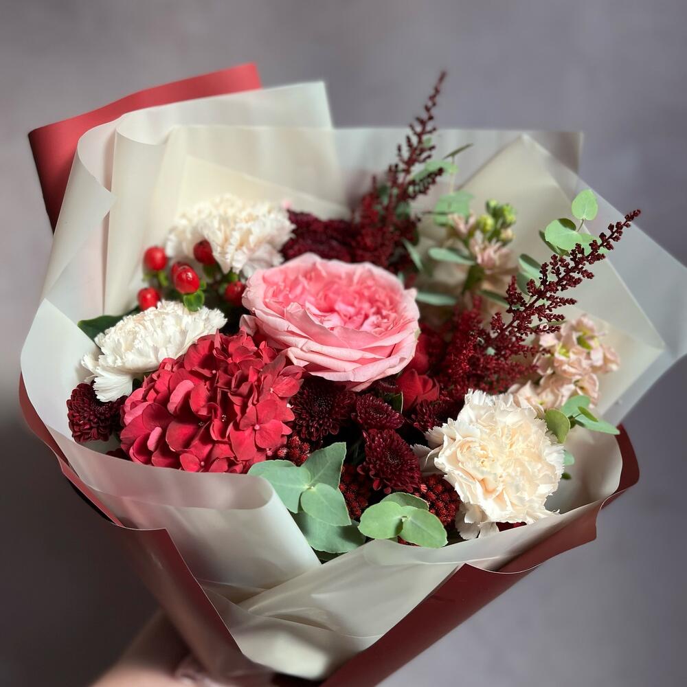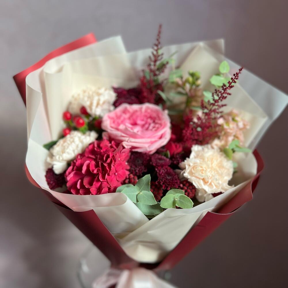 Категории: Гвоздики, Гортензии, Пионовидные розы, Розы