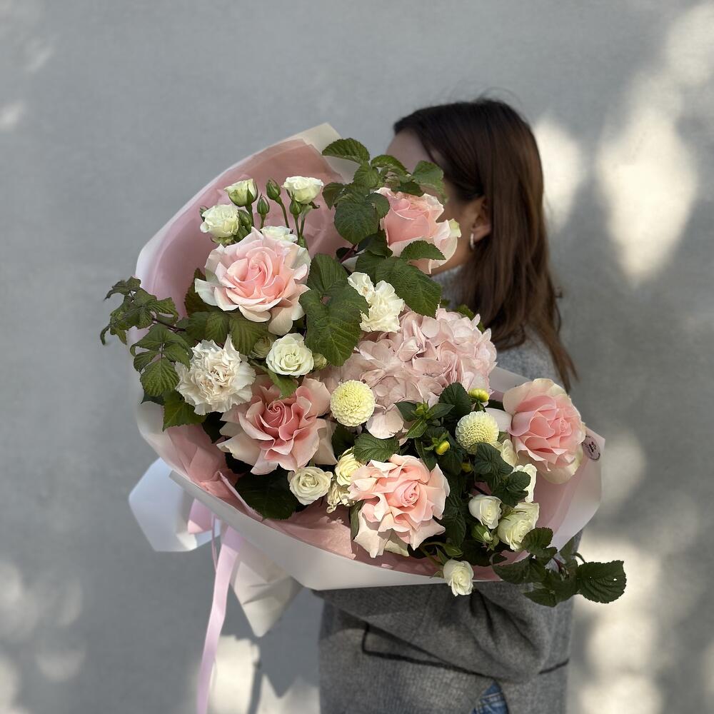 Гвоздики, Кустовые розы, Лизиантусы, Пионовидные розы, Розы