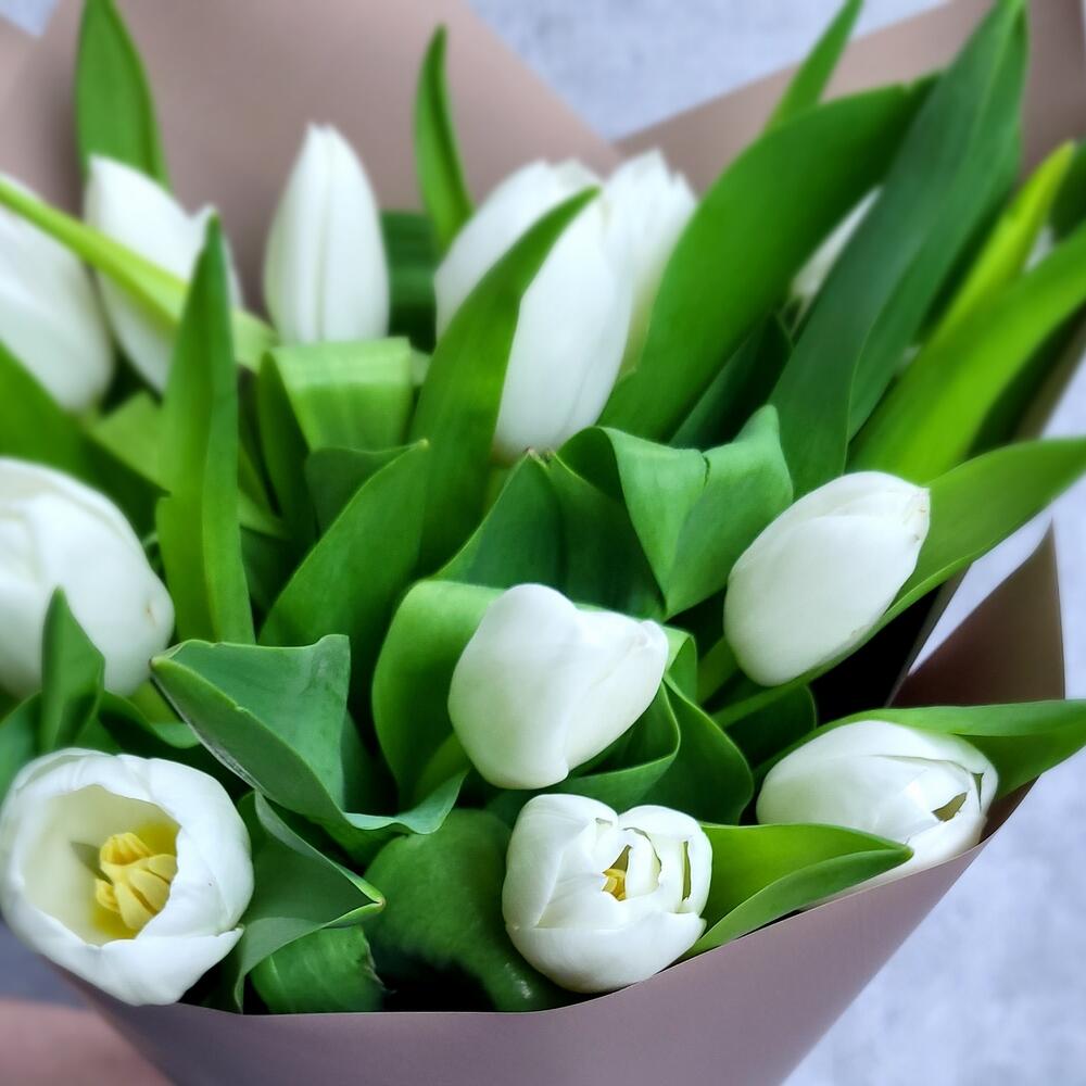 15 белых тюльпанов в плёнке
