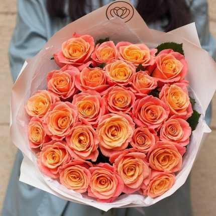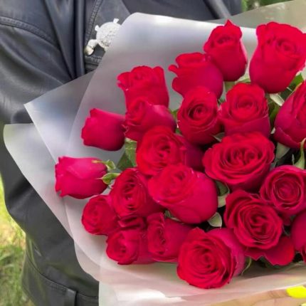 Букет из 25 высоких кустовых роз (Кения) 60-70 см в стильной упаковке